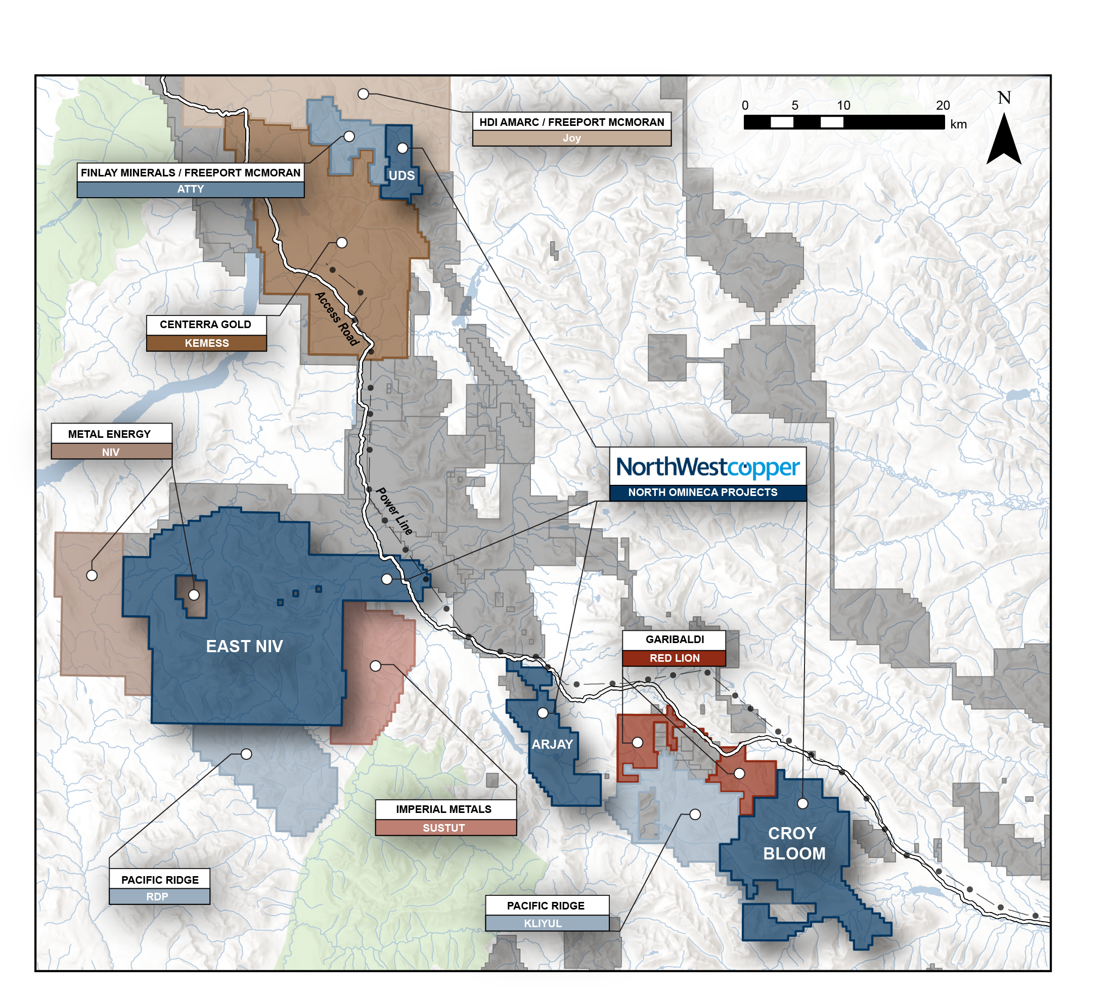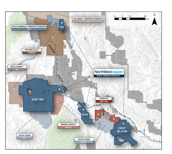Figure 1. NorthWest Copper North Omineca property map (April, 2026)